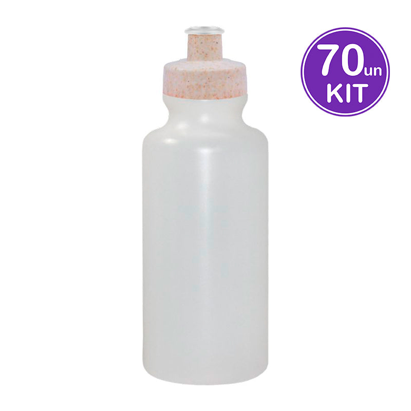 Squeeze 550mL de Plástico Premium (PE) resistente e flexível, garrafa cor natural, tampa rosqueável sustentável feito com 50% de fibra de coco e 50% de Plástico Premium (PP) e bico...