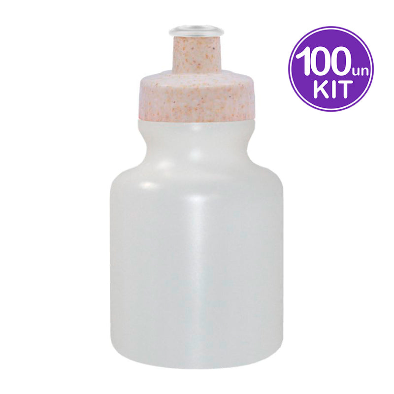 Squeeze 300mL de Plástico Premium (PE) resistente e flexível, garrafa cor natural, tampa rosqueável feito com 50% de fibra de madeira e 50% de Plástico Premium (PP) atóxico e bico...