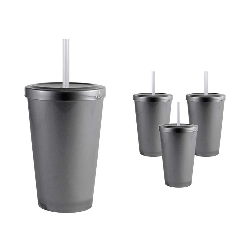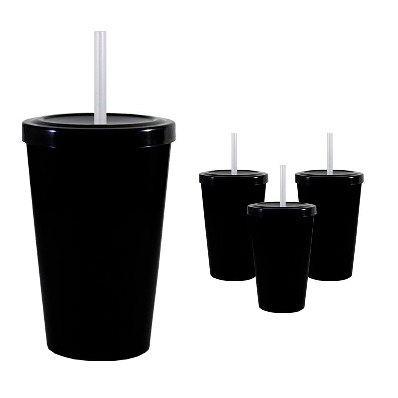 Ideal para quem busca conforto e versatilidade na hora de saborear suas bebidas preferidas. Fabricado em plástico premium atóxico, resistente, com tampa e canudo. *Imagens meramente ilustrativas. Conteúdo - 4...
