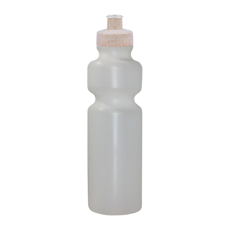 Squeeze 750mL de Plástico Premium (PE) resistente e flexível, garrafa cor natural, tampa rosqueável sustentável feito com 50% de fibra de madeira e 50% de Plástico Premium (PP) e bico...