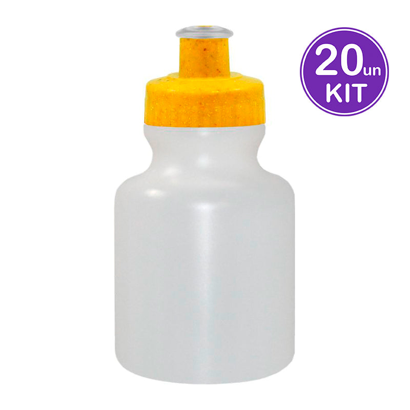 Squeeze 300mL de Plástico Premium (PE) resistente e flexível, garrafa cor natural, tampa rosqueável feito com 50% de fibra de madeira e 50% de Plástico Premium (PP) atóxico e bico...