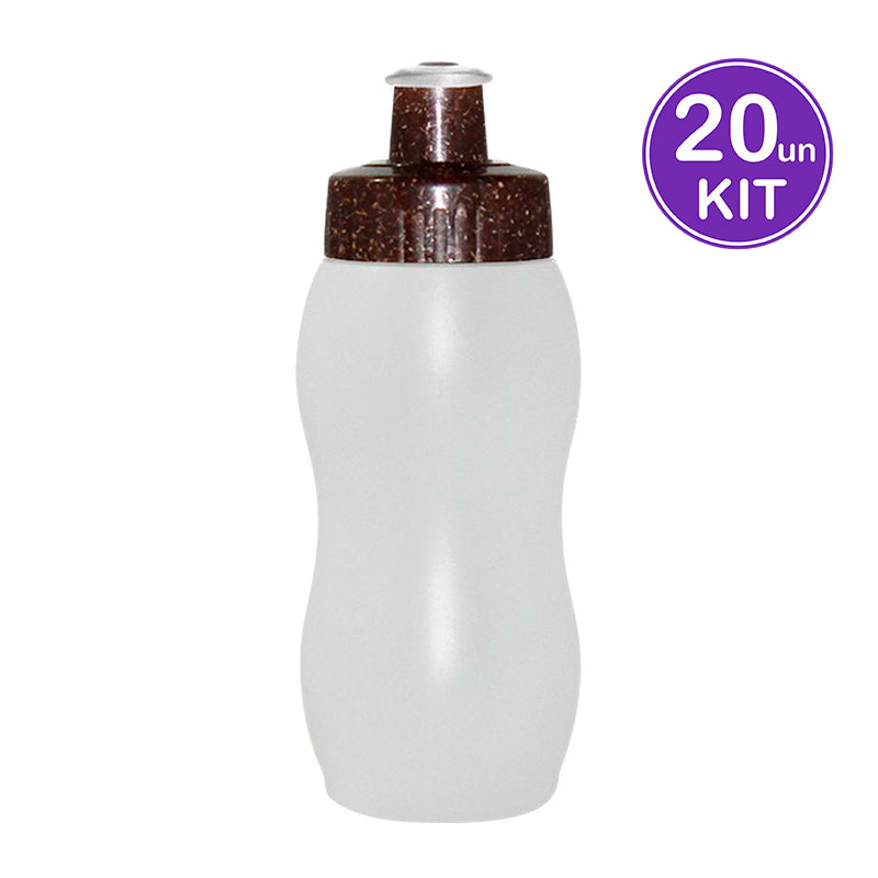 Squeeze Wave 250mL de Plástico Premium (PE) resistente e flexível, garrafa cor natural, tampa rosqueável sustentável feito com 50% de fibra de coco e 50% de Plástico Premium (PP) e...