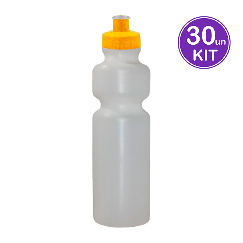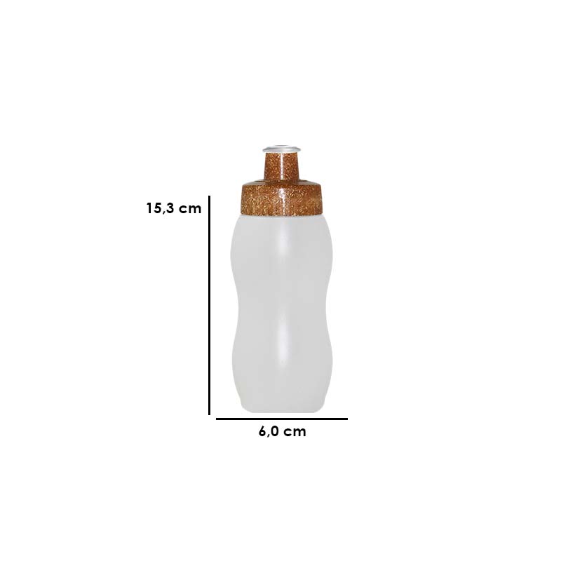 Squeeze 750mL de Plástico Premium (PE) resistente e flexível, garrafa cor natural, tampa rosqueável feito com 50% de fibra de madeira e 50% de Plástico Premium (PP) atóxico e bico...