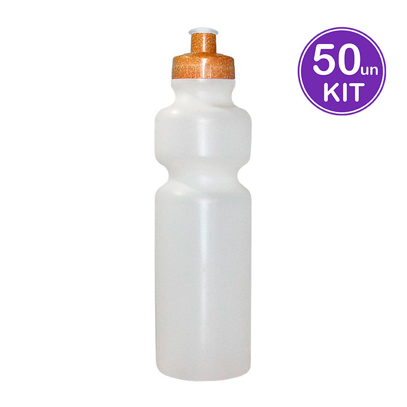 Squeeze 750mL de Plástico Premium (PE) resistente e flexível, garrafa cor natural, tampa rosqueável feito com 50% de fibra de madeira e 50% de Plástico Premium (PP) atóxico e bico...