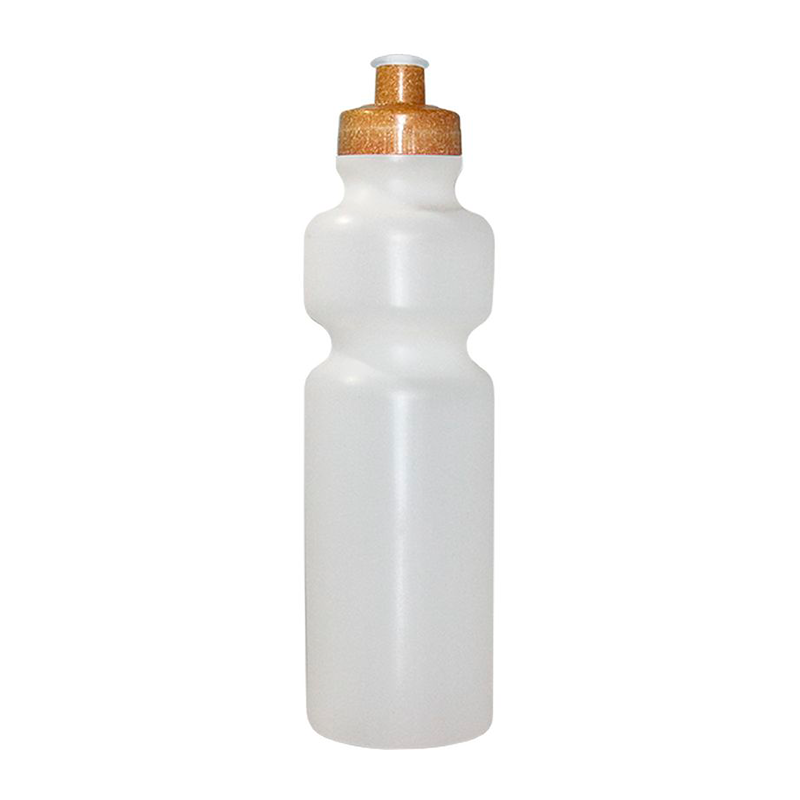 Squeeze 750mL de Plástico Premium (PE) resistente e flexível, garrafa cor natural, tampa rosqueável sustentável feito com 50% de fibra de madeira e 50% de Plástico Premium (PP) e bico...