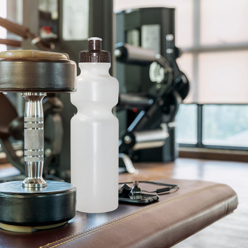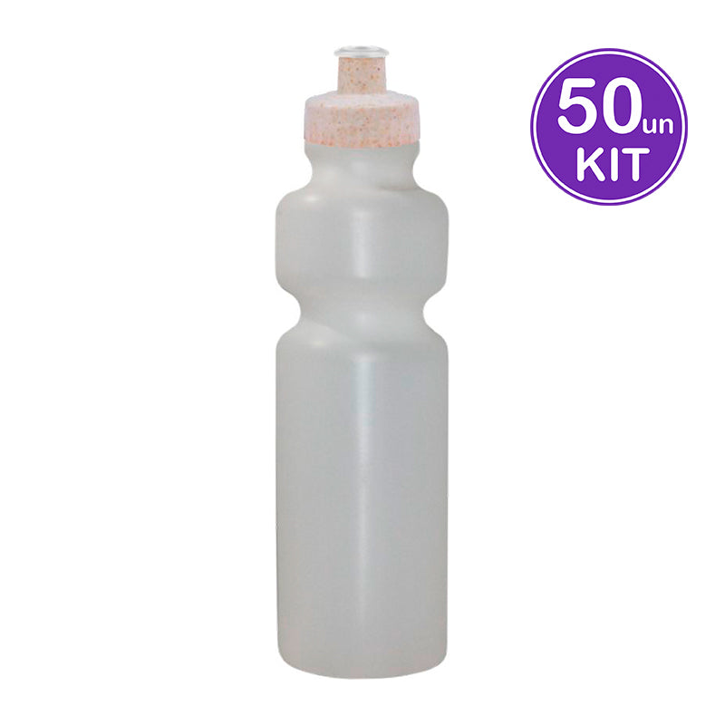 Squeeze 750mL de Plástico Premium (PE) resistente e flexível, garrafa cor natural, tampa rosqueável sustentável feito com 50% de fibra de coco e 50% de Plástico Premium (PP) e bico...