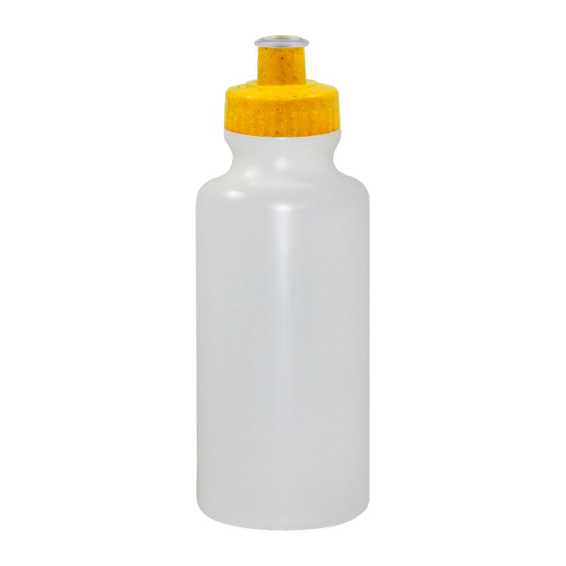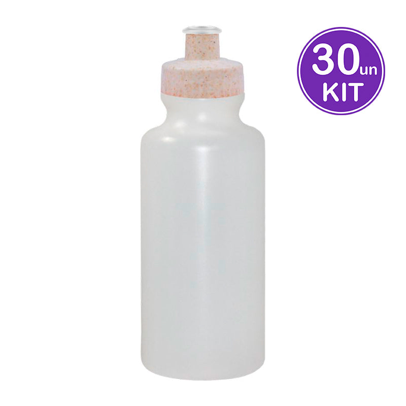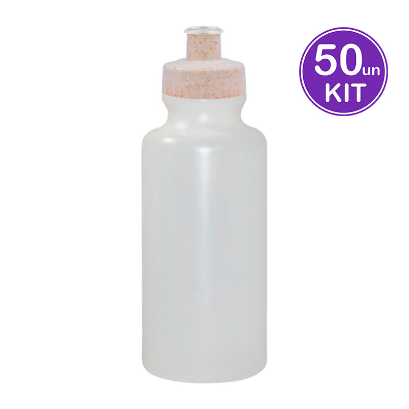 Squeeze 550mL de Plástico Premium (PE) resistente e flexível, garrafa cor natural, tampa rosqueável feito com 50% de fibra de madeira e 50% de Plástico Premium (PP) atóxico e bico...