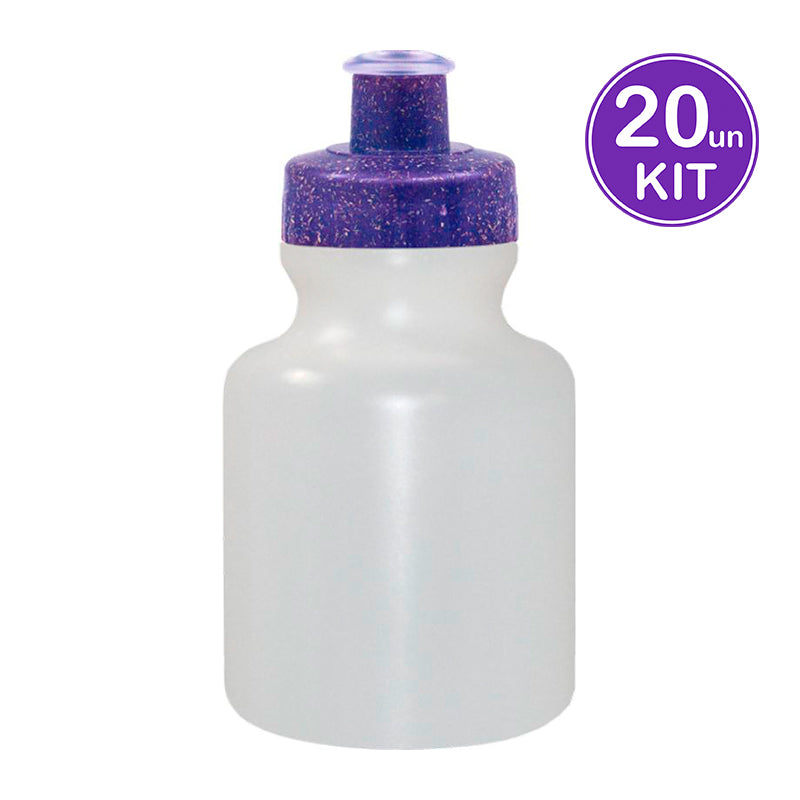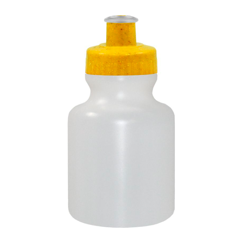 Squeeze 300mL de Plástico Premium (PE) resistente e flexível, garrafa cor natural, tampa rosqueável feito com 50% de fibra de madeira e 50% de Plástico Premium (PP) atóxico e bico...
