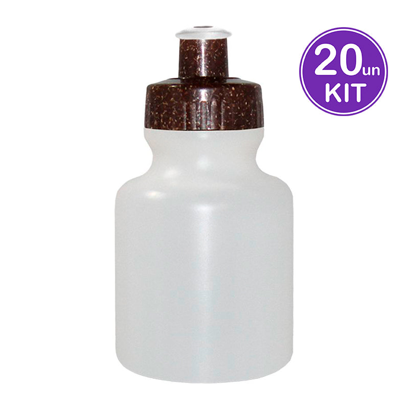 Squeeze 300mL de Plástico Premium (PE) resistente e flexível, garrafa cor natural, tampa rosqueável feito com 50% de fibra de madeira e 50% de Plástico Premium (PP) atóxico e bico...