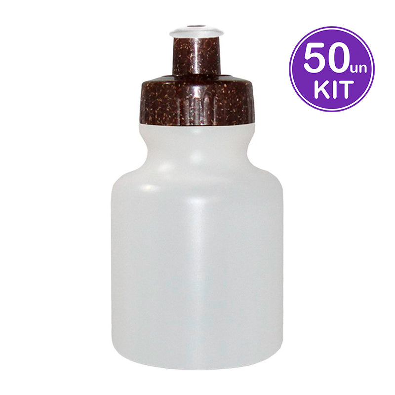 Squeeze 300mL de Plástico Premium (PE) resistente e flexível, garrafa cor natural, tampa rosqueável sustentável feito com 50% de fibra de coco e 50% de Plástico Premium (PP) e bico...