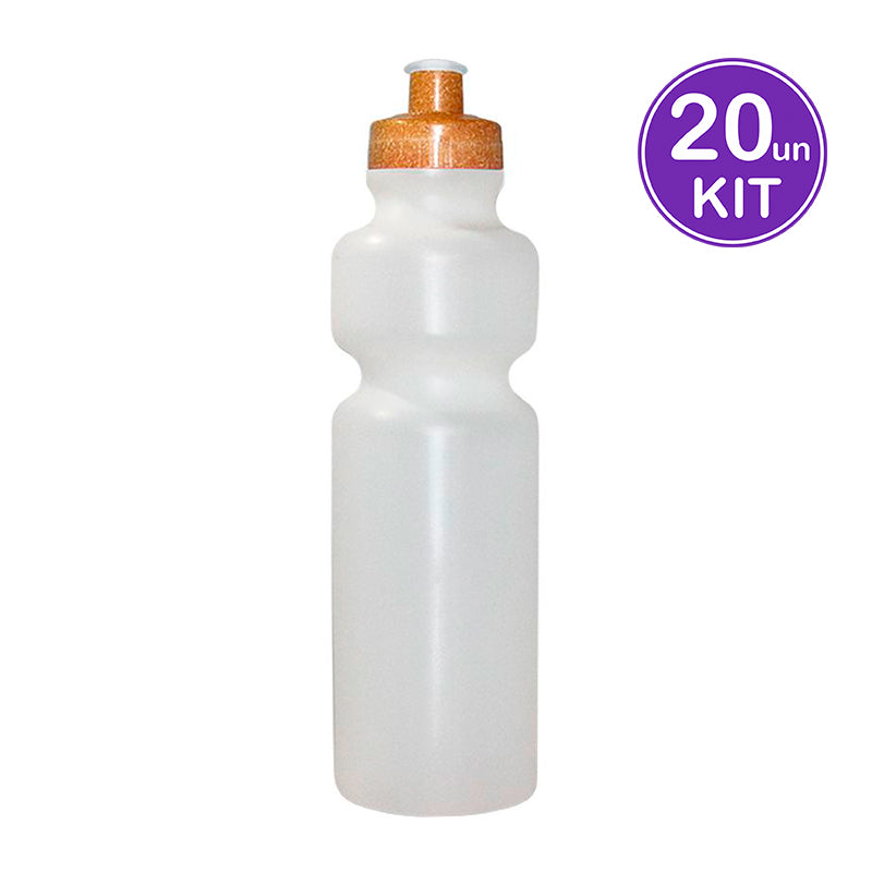Squeeze 750mL de Plástico Premium (PE) resistente e flexível, garrafa cor natural, tampa rosqueável feito com 50% de fibra de madeira e 50% de Plástico Premium (PP) atóxico e bico...