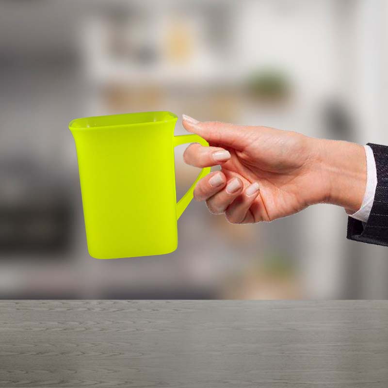 Kit 2 Canecas Quadrada Amarelo Neon 250Ml Plástico Premium