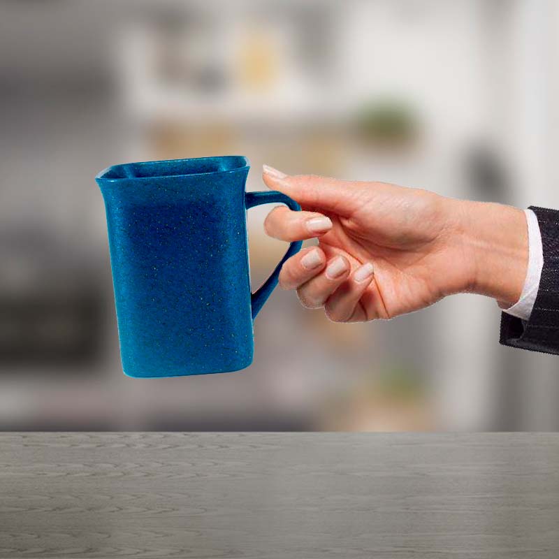Kit 2 Canecas Quadrada Fibra Madeira Azul 250mL