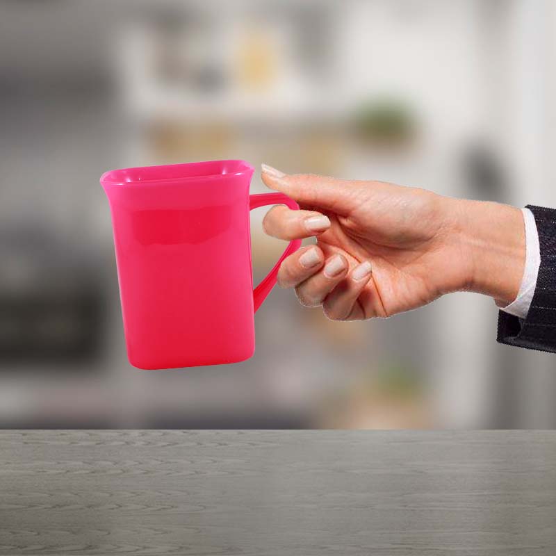 Kit 2 Canecas Quadrada Rosa Neon 250Ml Plástico Premium