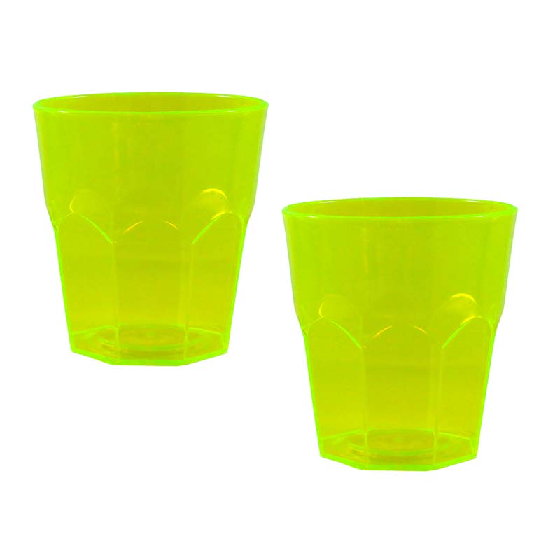 Kit 2 Copos Mini Roma Cristal Amarelo Neon 300mL Plástico