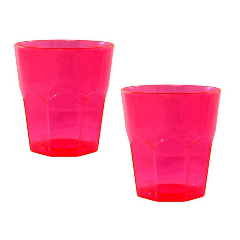 Kit 2 Copos Mini Roma Cristal Rosa Neon 300mL Plástico
