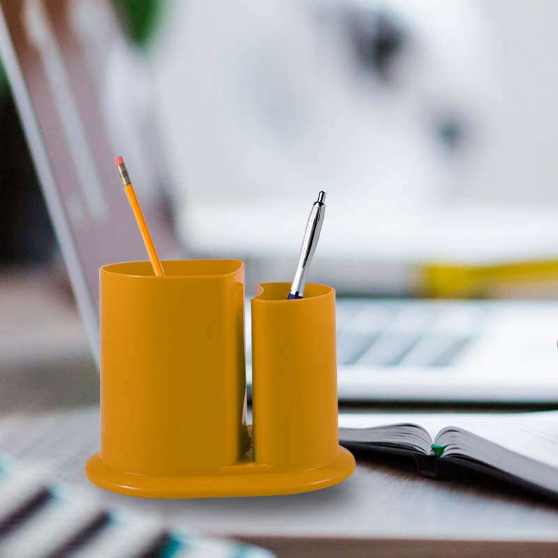 Kit 2 Porta Lápis Duo Amarelo Plástico