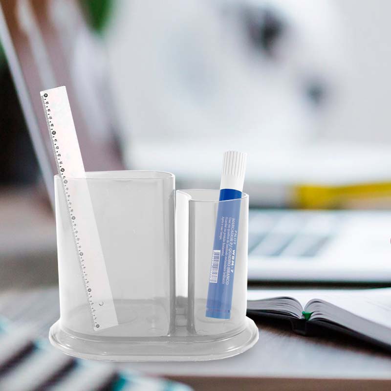 Kit 2 Porta Lápis Duo Cristal Transparente Plástico