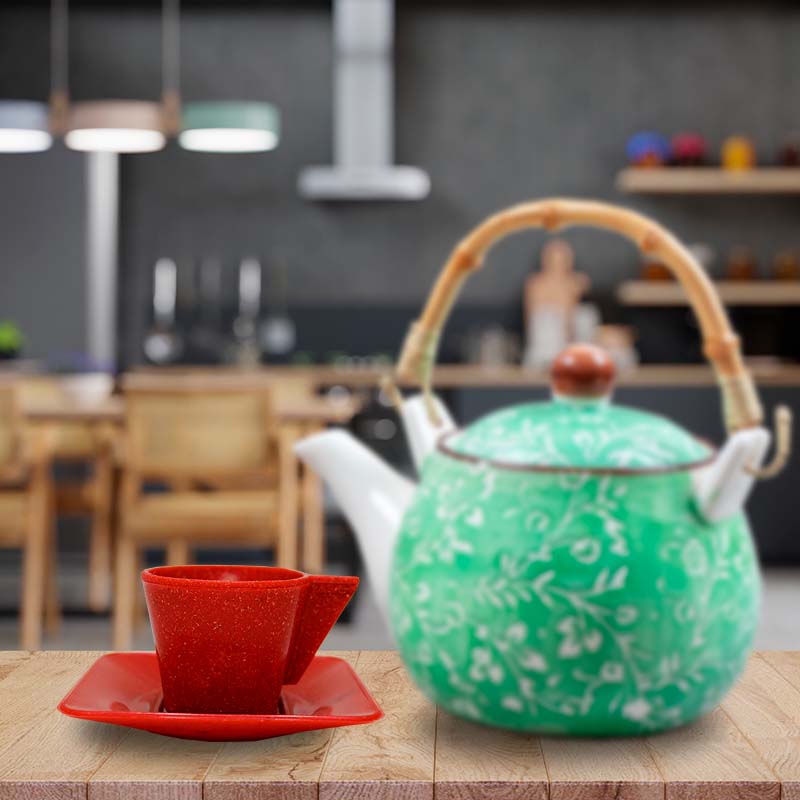 Kit 2 Xícara E Pires 50mL Fibra Madeira Vermelho