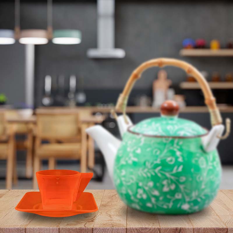 Kit 2 Xícara E Pires Cristal Laranja Neon 50mL Plástico
