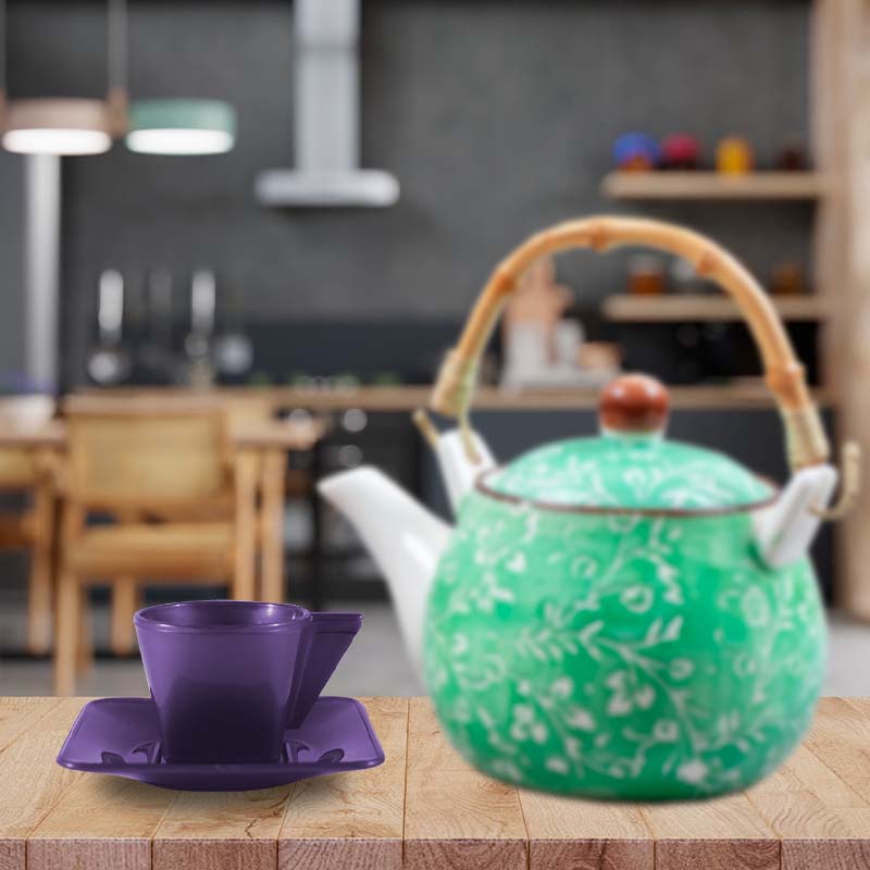 Kit 2 Xícara E Pires Lilás 50mL Plástico