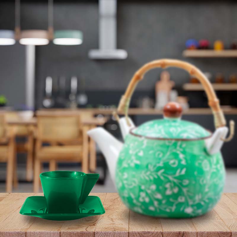 Kit 2 Xícara E Pires Verde 50mL Plástico