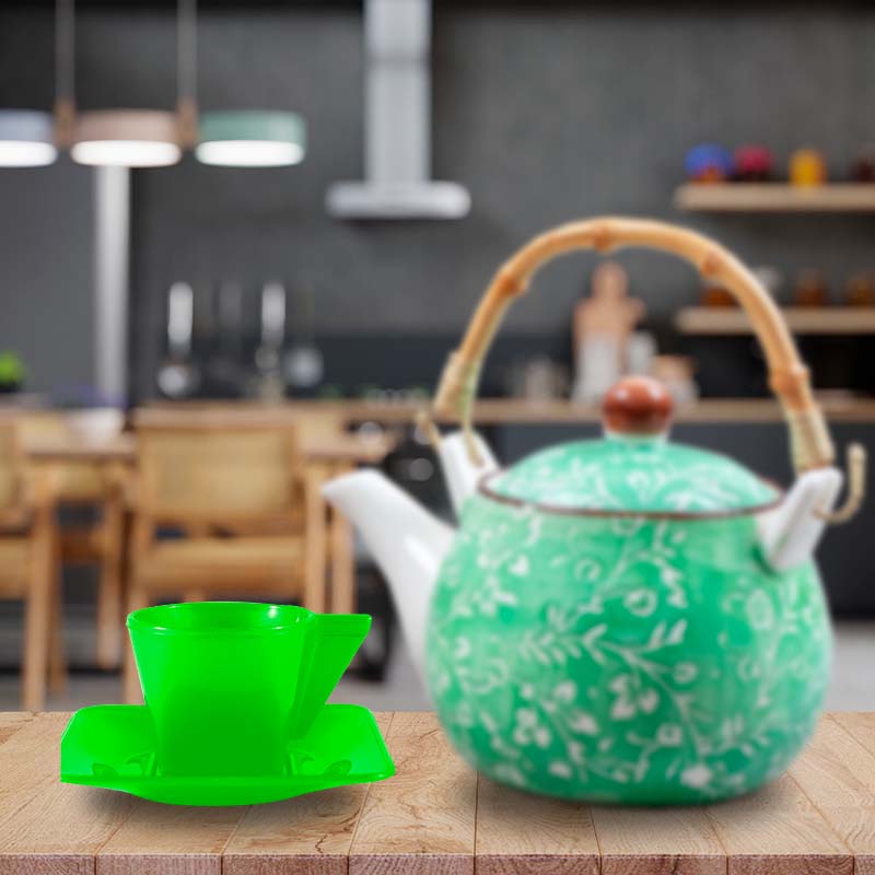 Kit 2 Xícara E Pires Verde Neon 50mL Plástico