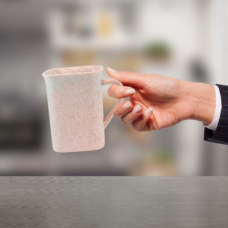 Kit 4 Canecas Quadrada Fibra Madeira Palha 250mL
