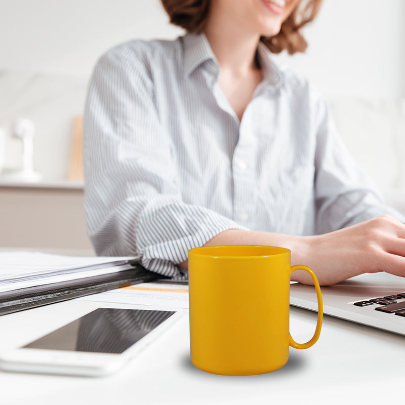 Kit 4 Canecas Redonda Amarelo 400mL Plástico Premium