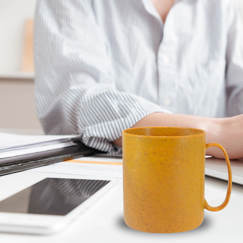 Kit 4 Canecas Redonda Fibra Madeira Amarelo 400mL