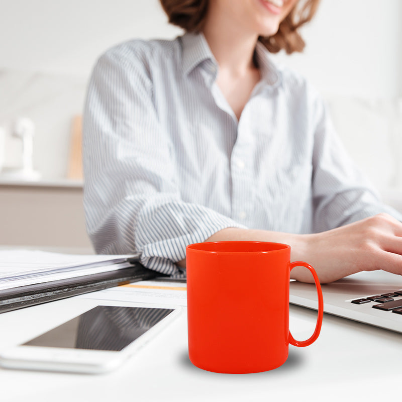 Kit 4 Canecas Redonda Laranja Neon 400mL Plástico Premium