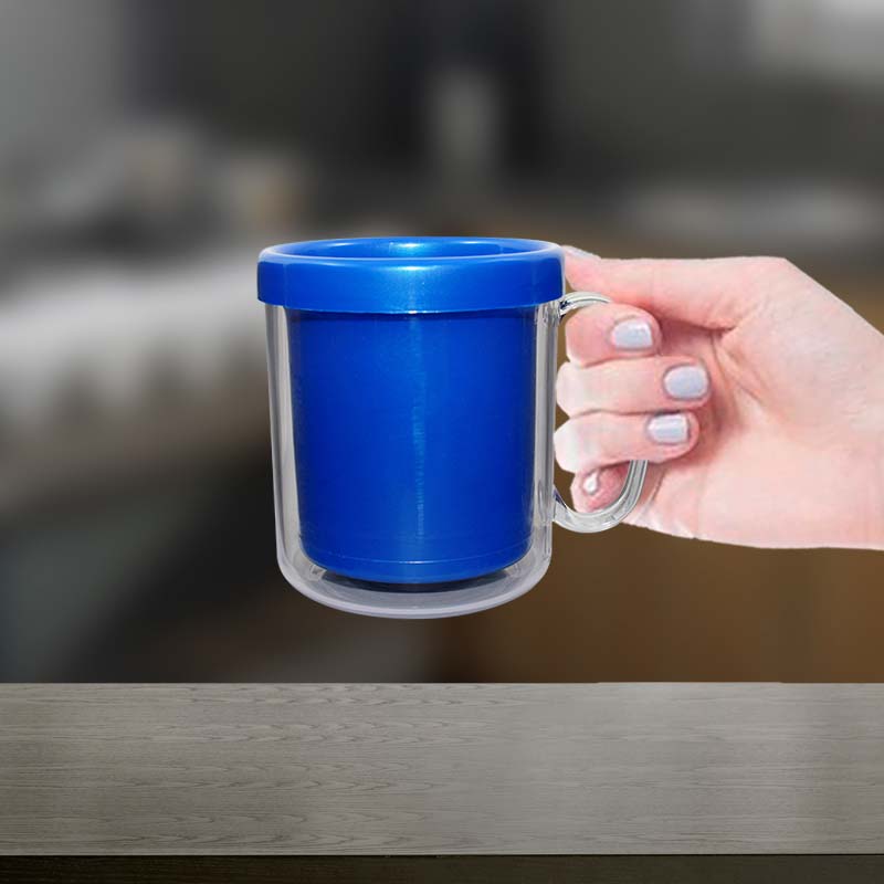 Kit 4 Canecas Térmica Cristal Azul 300mL Plástico