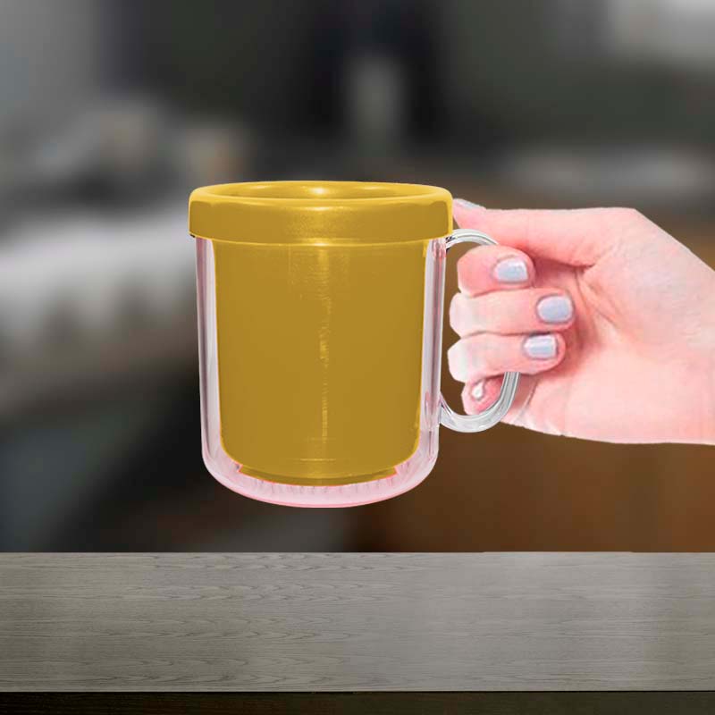 Kit 4 Canecas Térmica Cristal Dourado 300mL Plástico