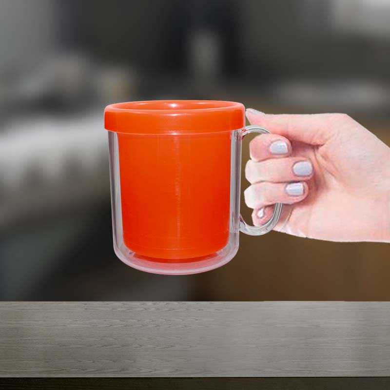 Kit 4 Canecas Térmica Cristal Laranja Neon  300mL Plástico
