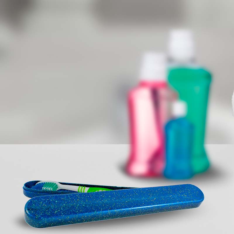 Kit 4 Porta Escova Dental Fibra Madeira Azul