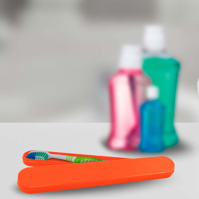 Kit 4 Porta Escova Dental Laranja Neon Plástico