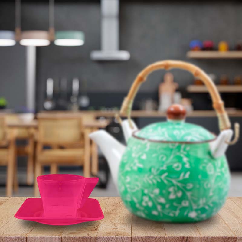 Kit 4 Xícara E Pires Cristal Rosa Neon 50mL Plástico