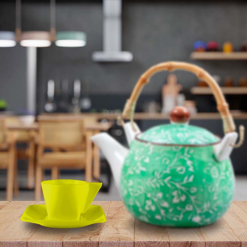Kit 4 Xícara E Pires Amarelo Neon 50mL Plástico