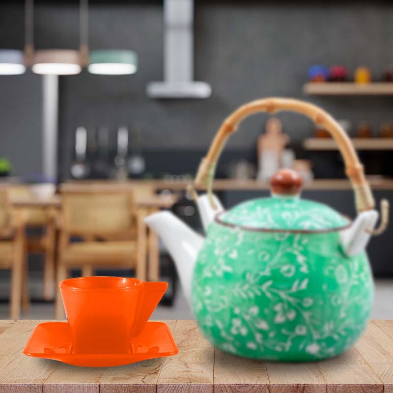 Kit 4 Xícara E Pires Laranja Neon 50mL Plástico