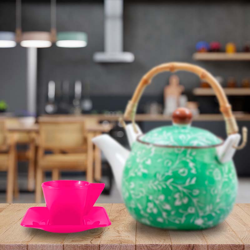 Kit 4 Xícara E Pires Rosa Neon 50mL Plástico