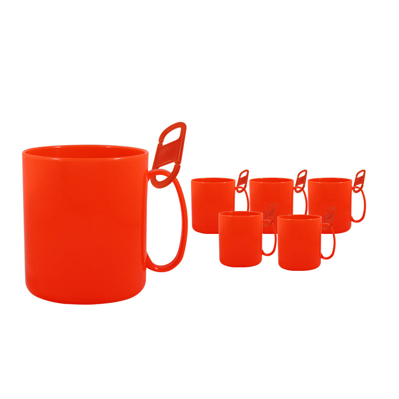 Kit 6 Caneca Redonda Clipe Laranja Neon 400mL Plástico