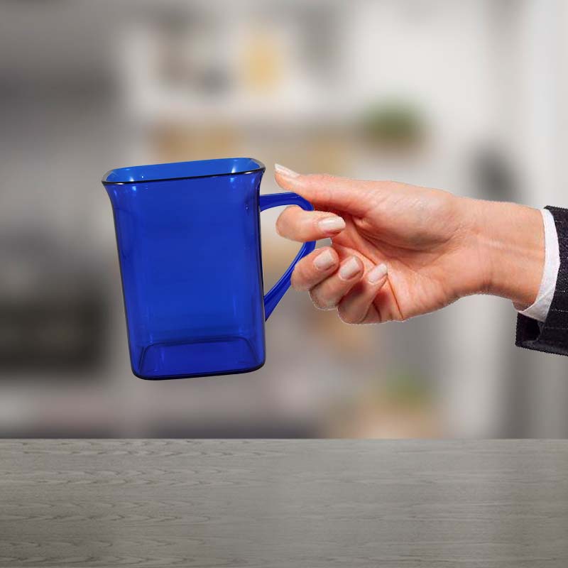 Kit 6 Canecas Quadrada Cristal Azul 250mL Plástico