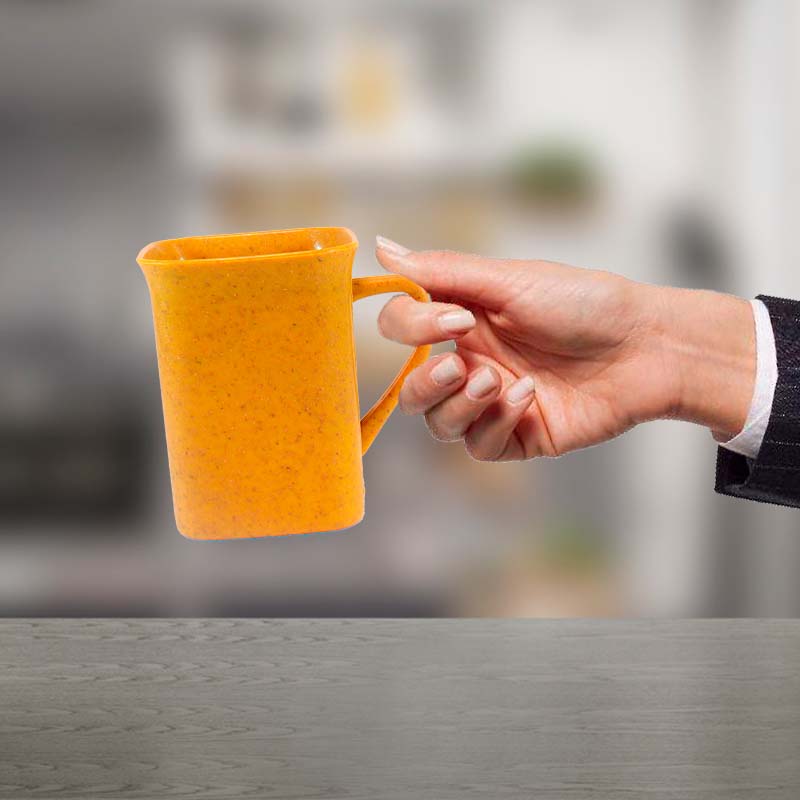Kit 6 Canecas Quadrada Fibra Madeira Amarelo 250mL