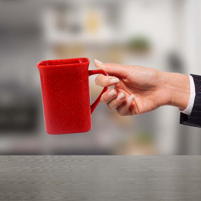 Kit 6 Canecas Quadrada Fibra Madeira Vermelho 250mL