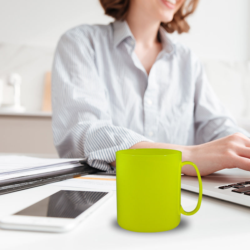 Kit 6 Canecas Redonda Amarelo Neon 400mL Plástico Premium