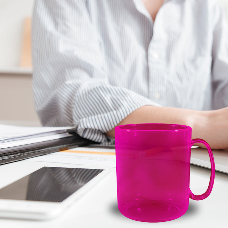 Kit 6 Canecas Redonda Cristal Rosa Neon 400mL Plástico