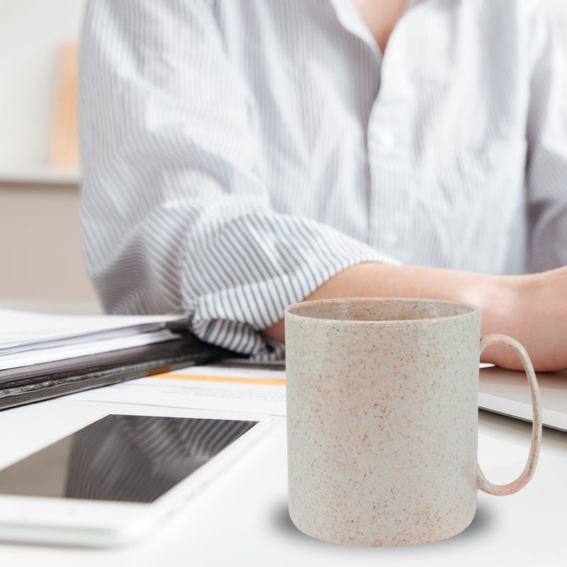 Kit 6 Canecas Redonda Fibra Madeira Palha 400mL