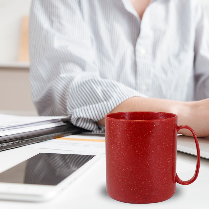Kit 6 Canecas Redonda Fibra Madeira Vermelho 400mL