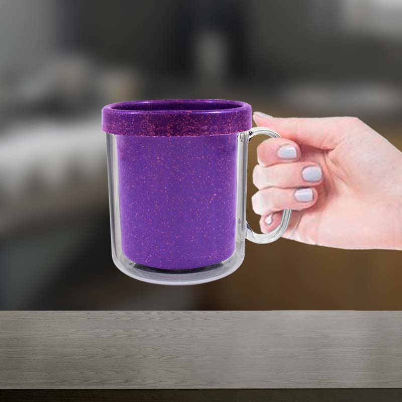 Kit 6 Canecas Térmica Cristal 300mL Fibra Madeira Lilás