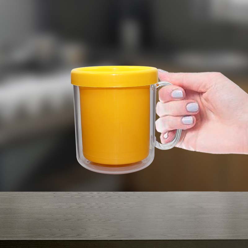 Kit 6 Canecas Térmica Cristal Amarelo 300mL Plástico